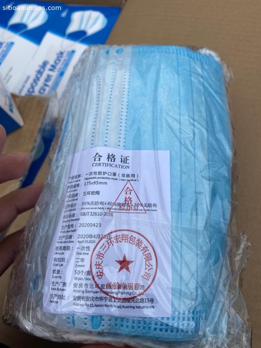 Mascarillas quirúrgicas certificadas, 3 pliegues. Caja de 50 und.*(Cantidad mínima de compra: 3 cajas)*