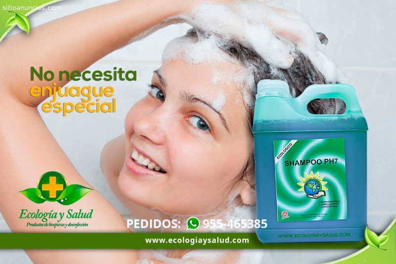 Shampoo PH7 Neutro, ecologico sin sal, no irrita los ojosNo decolora el cabello teñido, no irrita los ojos, no despoja al cabello de sus aceites naturales, dejándolo totalmente limpio y suave. No necesita enjuague especial.