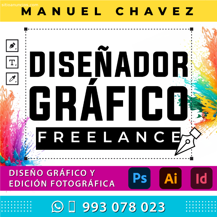 Hola que tal, mi nombre es Manuel Chavez, soy Diseñador Gráfico con varios años de experiencia.Realizo trabajos de Diseño Gráfico en la modalidad de freelance o particular, relacionados a diseño de logos, tarjetería, afiches, flyers, banners y otros tipos de publicidad gráfica y digital, y también trabajos de retoques fotográficos como: restauración de imágenes, colorizaciones, fotomontajes, cambio de fondos, collages, mockups y más.