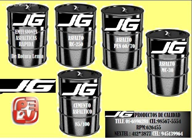 Somos una empresa centrada en satisfacer las necesidades del mercado nacional. JG ASFALTOS EIRL Siempre generando y propiciando la competencia en el mercado brindando un excelente servicio.Tenemos a la venta productos de alta calidad