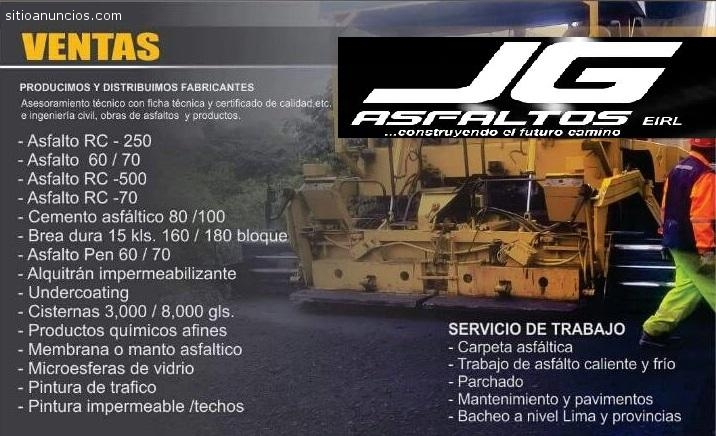 JG ASFALTOS EIRLLLEGAMOS A TODO NUESTRO PERU, CON LOS MEJORES INSUMOS ASFALTICOS, AQUÍ NUESTRA GRAN VARIEDAD;
