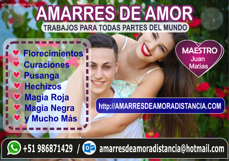 Soy Juan Matías, curandero norteño, experto en realizar cualquier tipo de conjuros como hechicerías con magia blanca, magia vudú y magia negra además de brujerías exitosas para el amor, así como también de amarres caseros, efectivos y amorosos esenciales para tener felicidad con tu pareja.