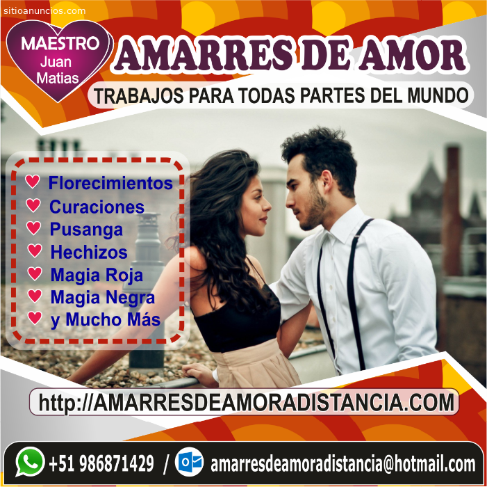 Soy Juan Matías, curandero norteño, experto en realizar cualquier tipo de conjuros como hechicerías con magia blanca, magia vudú y magia negra además de brujerías exitosas para el amor, así como también de amarres caseros, efectivos y amorosos esenciales para tener felicidad con tu pareja.