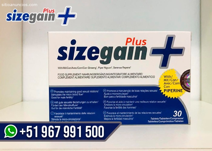 Sizegain PLUS nace para reforzar la masculinidad. Sus ingredientes naturales ayudan a conseguir una vida sexual de calidad, y permiten aumentar de talla el miembro masculino. Además, incorpora Bioperine que facilita la absorción de los ingredientes activos.PEDIDOS: 967991500