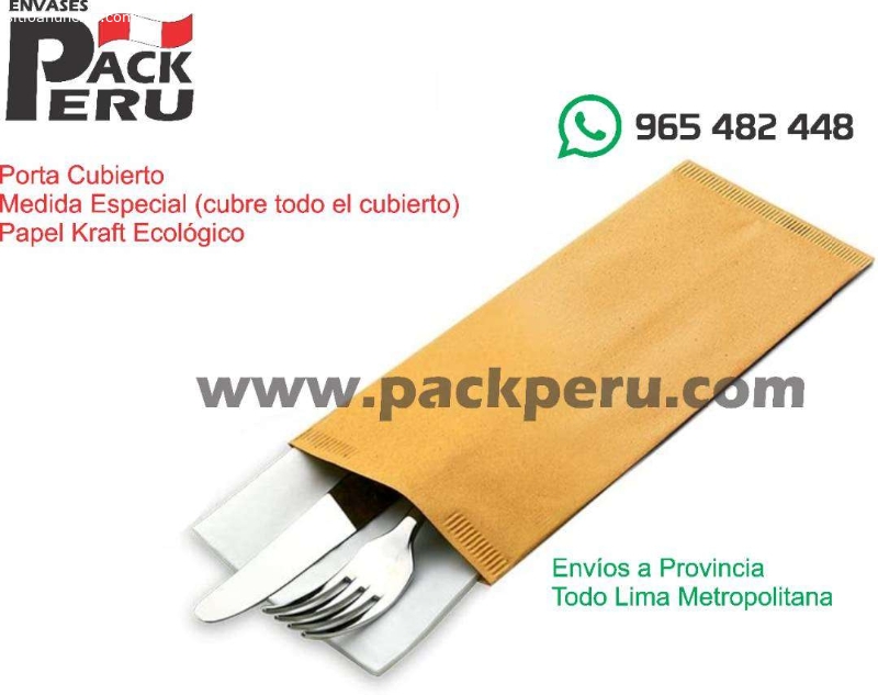 SOMOS PACK PERÚ FABRICANTES DE PORTA CUBIERTOS CON IMPRESIÓN PERSONALIZADAFABRICAMOS PORTA CUBIERTOS EN DIFERENTES MODELOS DE PAPEL ECOLÓGICO BIODEGRADABLE