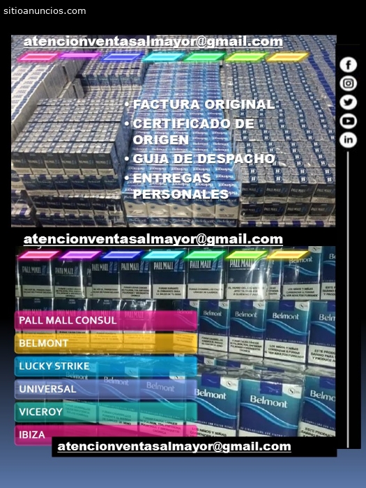 Cigarros al mayorEscribanos de manera directa a nuestro correo electrónico: (lo puede ver en las imágenes de este anuncio)