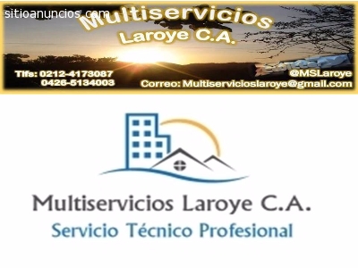 Multiservicios Laroye C.A. Servicio Técnico Industrial Y Comercial - MULTISERVICIOS LAROYE C.A. – Somos Una Empresa Dedicada A La Reparación, Venta Y Mantenimiento De: Aires Acondicionados, Neveras, Lavadoras, Congeladores, Fabricadores De Hielo, Cocinas Topes, Industrial Y Comercial, De Todos Los Tipos, Modelos Y Marcas. También Programamos, Actualizamos Y Reparamos Computadoras De Todas Las Marcas Y Modelos..! Contamos Con El Personal Técnico Calificado Y Capacitados Para Brindar La AtenciónPágina web: